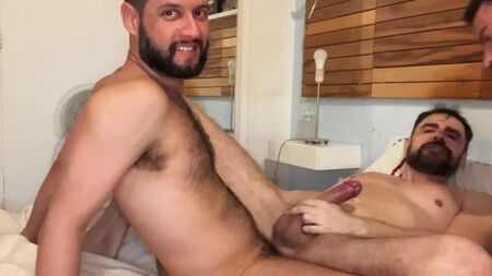 These hairy daddies came over to my place and we kissed, sucked, rimmed and fucked . In part 2 we continue fucking until they both shot their loads in my mouth